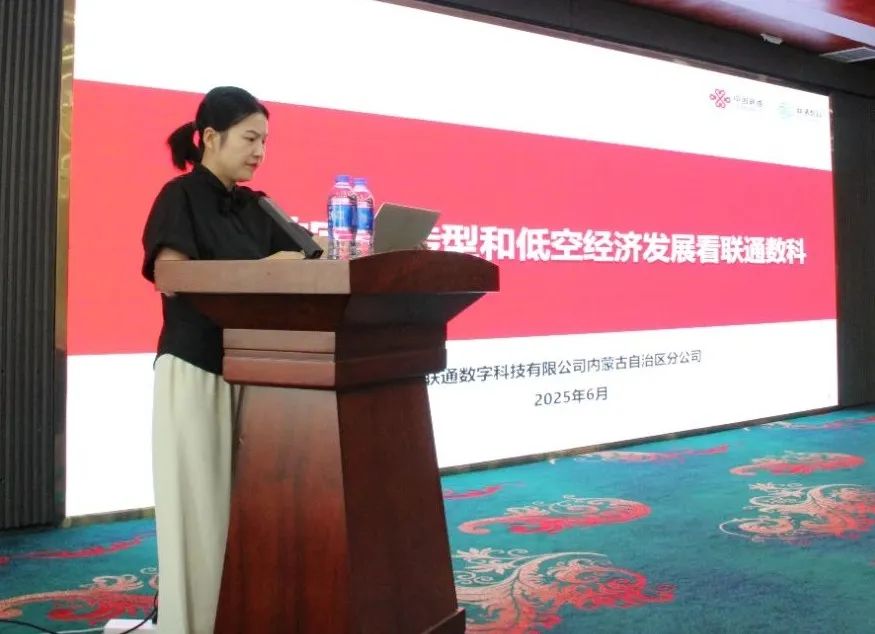 随后,联通数字科技有限公司内蒙古自治区分公司产品支撑部主任吴俊美带来《从数字化转型和低空经济发展看联通数科》主题分享,展现了联通数科作为数字科技领军企业的战略布局与创新实践。在数字化转型浪潮中,联通数科依托5G、云计算、大数据等核心技术,为千行百业提供智能化解决方案;而在蓬勃兴起的低空经济领域,联通数科积极探索无人机管控、空域数字化管理等创新应用,构建"天地一体"的数字基础设施。通过这两个战略性赛道的深度布局,联通数科正持续强化其"数字技术融合创新者"的行业定位,为数字中国建设注入新动能。